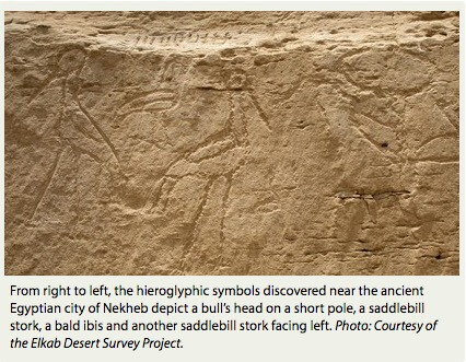 “The signs of the inscription appear to equate royal authority (the bull’s head on a pole) with solar power (the back-to-back storks),” explained Darnell in an email to Bible History Daily. Because Elkab was located at a crossroads for the mineral trade, “a statement of royal authority in the area would be appropriate.”