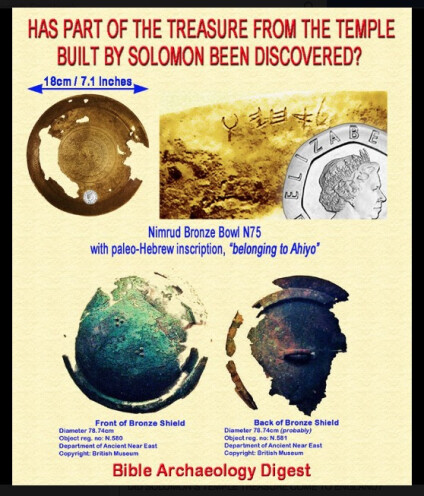 Professor Yadin suggested that this hoard of treasure could have included the bronze treasure received from Ahaz, King of Judah, by Tiglath-pileser III as described in 2Chronicles 28:21-22 ~ "Ahaz took away a portion out of Yahweh’s house, and out of the house of the king and of the princes, and gave it to the king of Assyria; but it didn’t help him. In the time of his distress, he trespassed yet more against Yahweh, this same king Ahaz." Another suggestion is that some of these bowls may have been given to Sennacherib by Hezekiah, as in 2King 18:13-16.