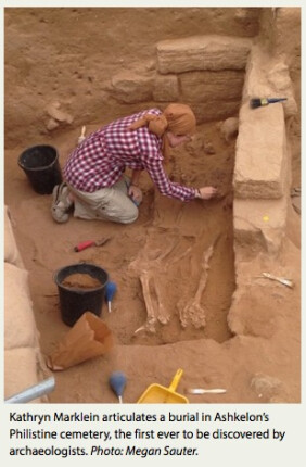 Philistine burials, has already identified some of the illnesses and traumas that plagued the Philistines. Her team’s study of the material is sure to yield many other insights into the Philistines, such as common traits and average life span. Although their investigations are just beginning, Fox and her team have noted a curious phenomenon: The vast majority of the individuals from Ashkelon’s cemetery are adults. Just a small percentage is children and infants. In a culture that surely experienced high rates of infant mortality, this is surprising. Where did the Philistines bury all of their babies? This question warrants further investigation.