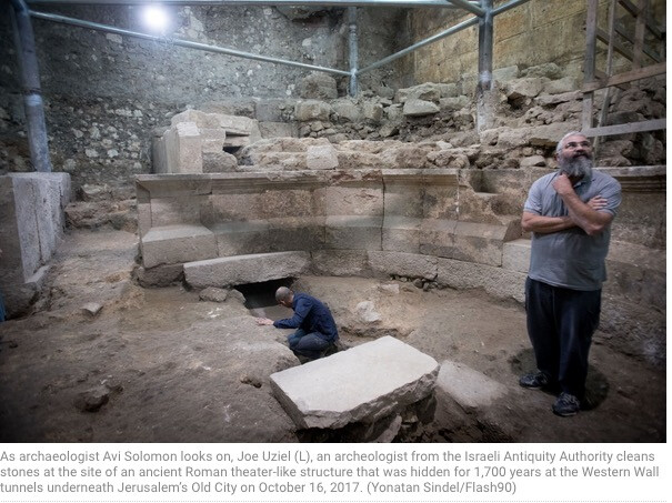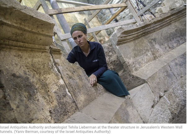 And in the course of their work, which has been quietly proceeding directly beneath Wilson’s Arch — the area immediately adjacent to the men’s section of the Western Wall — they unexpectedly discovered a small Roman theater. The dig has not encroached under the Temple Mount.
