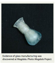 Dr. Ruth Jackson, a specialist in ancient glass and an advisor to Magdala regarding glass materials found here, says that the ancient town may also have produced glass vessels. We found evidence of glass manufacturing, such as waste glass materials, more than 1,800 glass pieces (some complete and many others to be restored) and glass sticks. Glass production was supported by mobile ovens (small basin-like or bowl-like structures), which were placed underneath the surface of the ground. Practically, these could be moved anywhere the craftsmen needed.