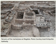 have revealed a great deal about the history of the Galilean towns and their populations during the first century C.E. At Magdala, hometown of Mary Magdalene in the Bible, excavations have uncovered a large marketplace with 28 shops, about 300 fishing weights, 40 pools and more than 4,000 ancient coins, the majority of which were minted in Jerusalem. Putting all of this together, the finds point to large-scale commercial interactions between Magdala and many other ancient cities, not only in Galilee but also in Jerusalem and other ports along the Mediterranean Sea, such as Caesarea Maritima.